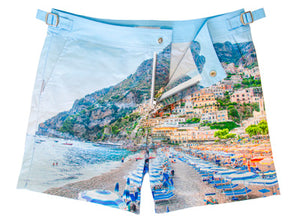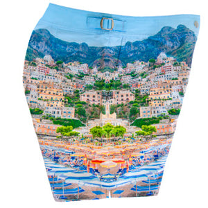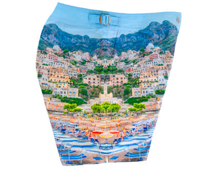 Each pair of our swim shorts is crafted from 19 high-resolution photos and 49 elements. Our custom prints are made by carefully placing 19 identical images onto laser-cut fabric pieces, then stitching them together with precision.
